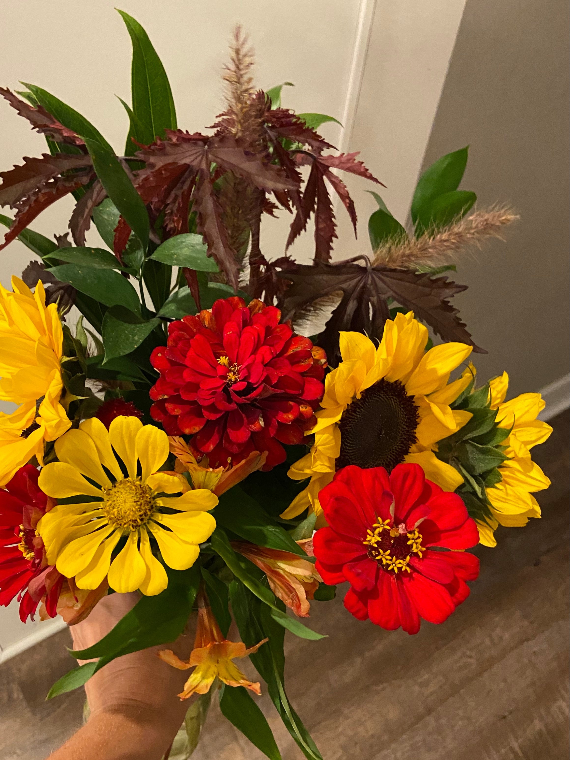 Aside from the stunning fall flowers like sunflowers and dahlias, we will be offering a few other farm items for you and your family to enjoy! We will expand our vegetable garden, pumpkin patch, try our hand at sweet corn and have some other exciting plans in the works! Stay tuned as we release more details in 2026!